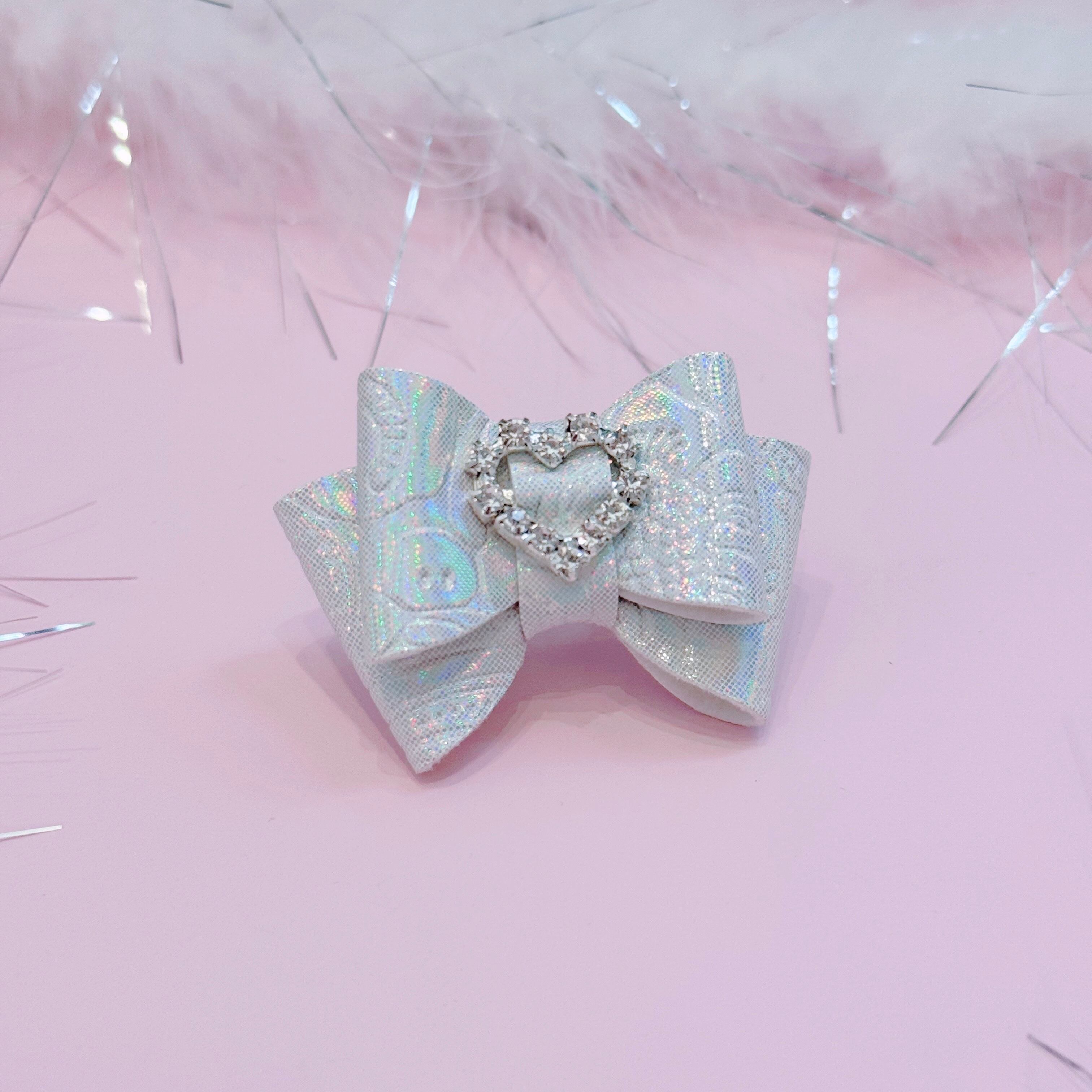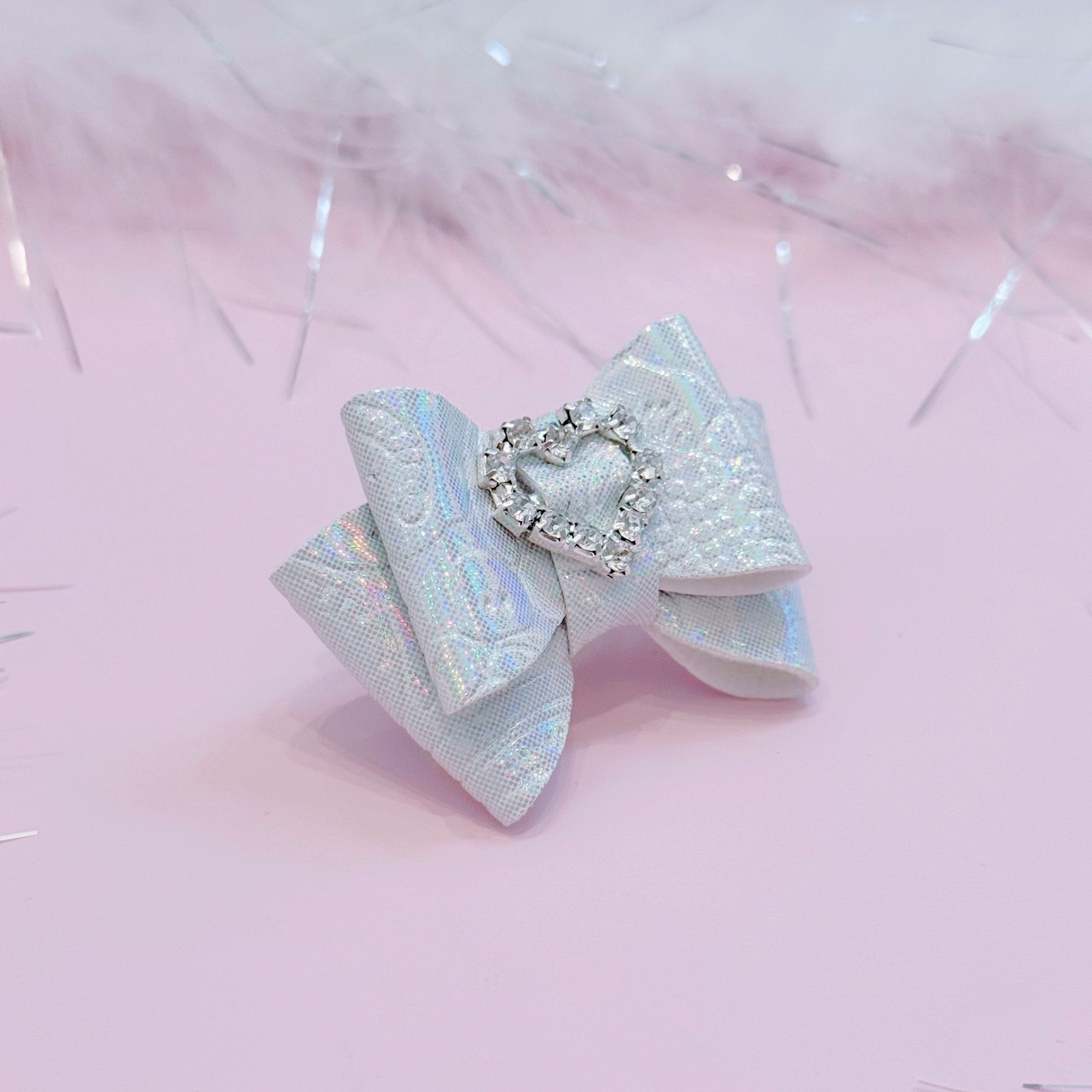 合皮のリボンにビジューのハート型のベルトバックルを真ん中に使用しております。