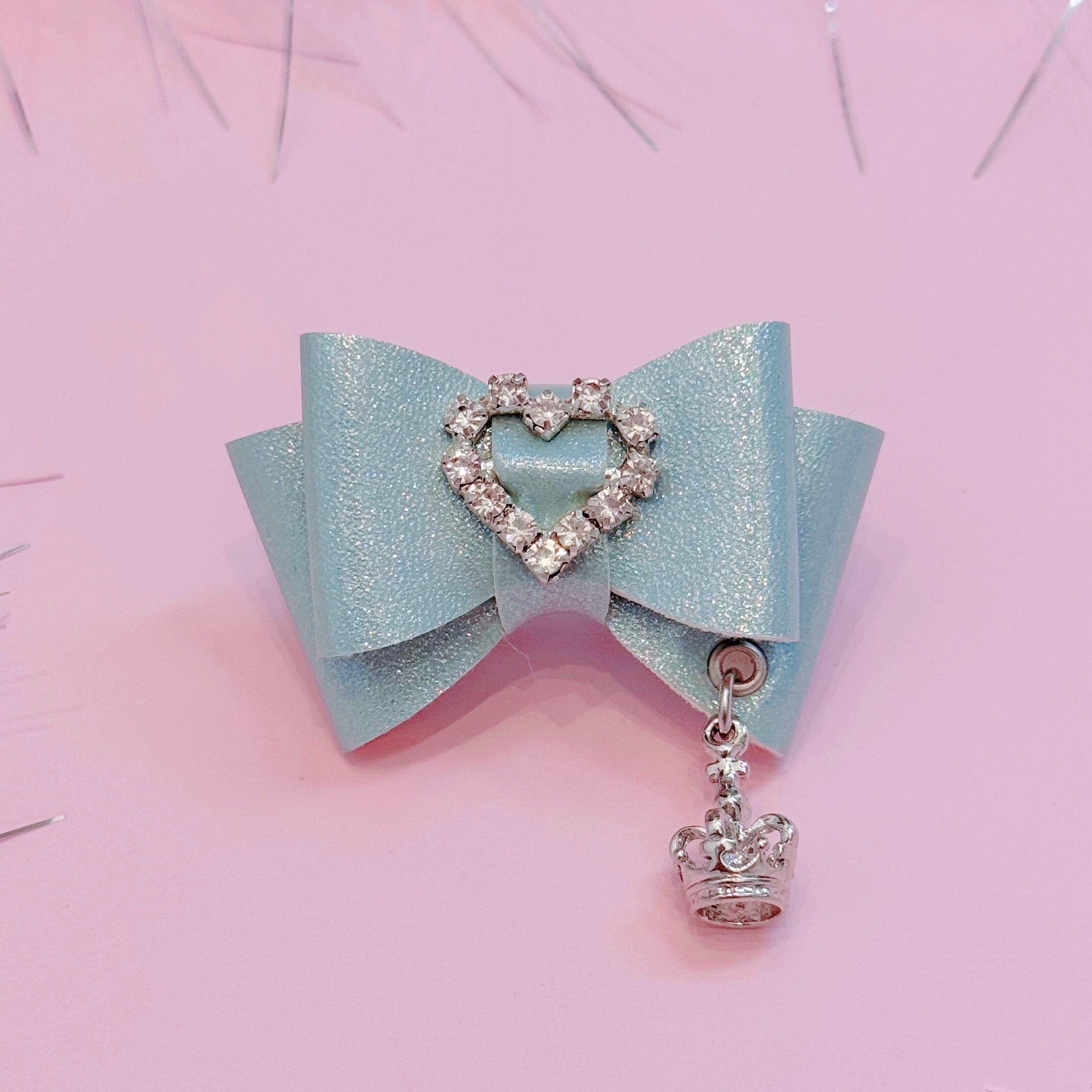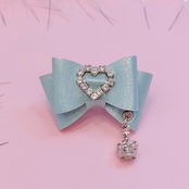 合皮のリボンにビジューのハート型のベルトバックルを真ん中に使用しております。