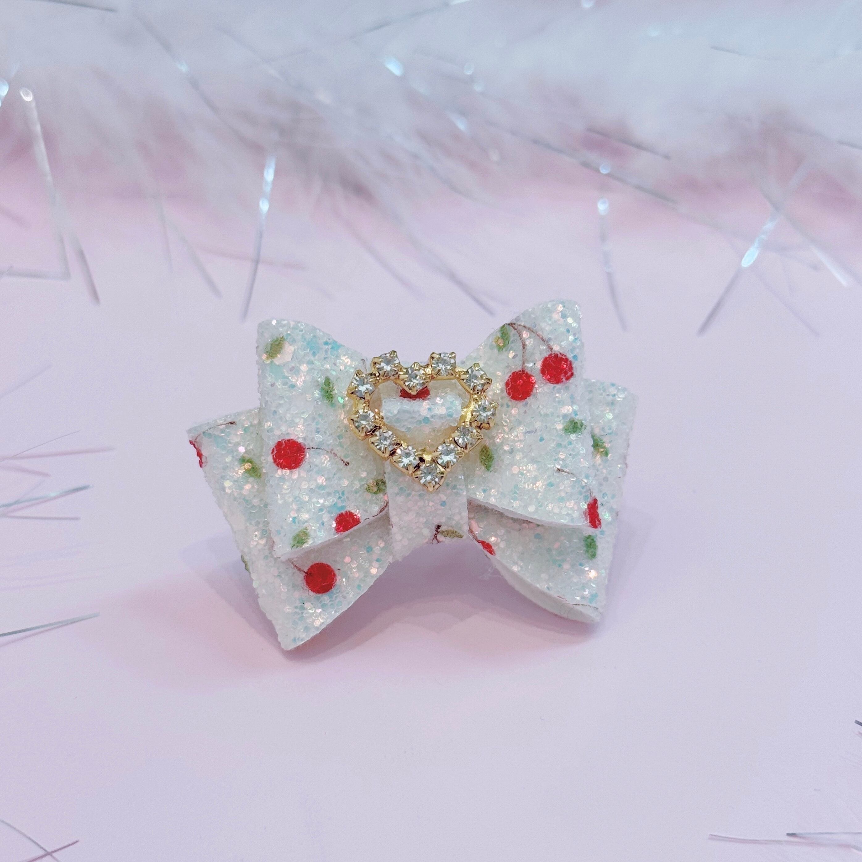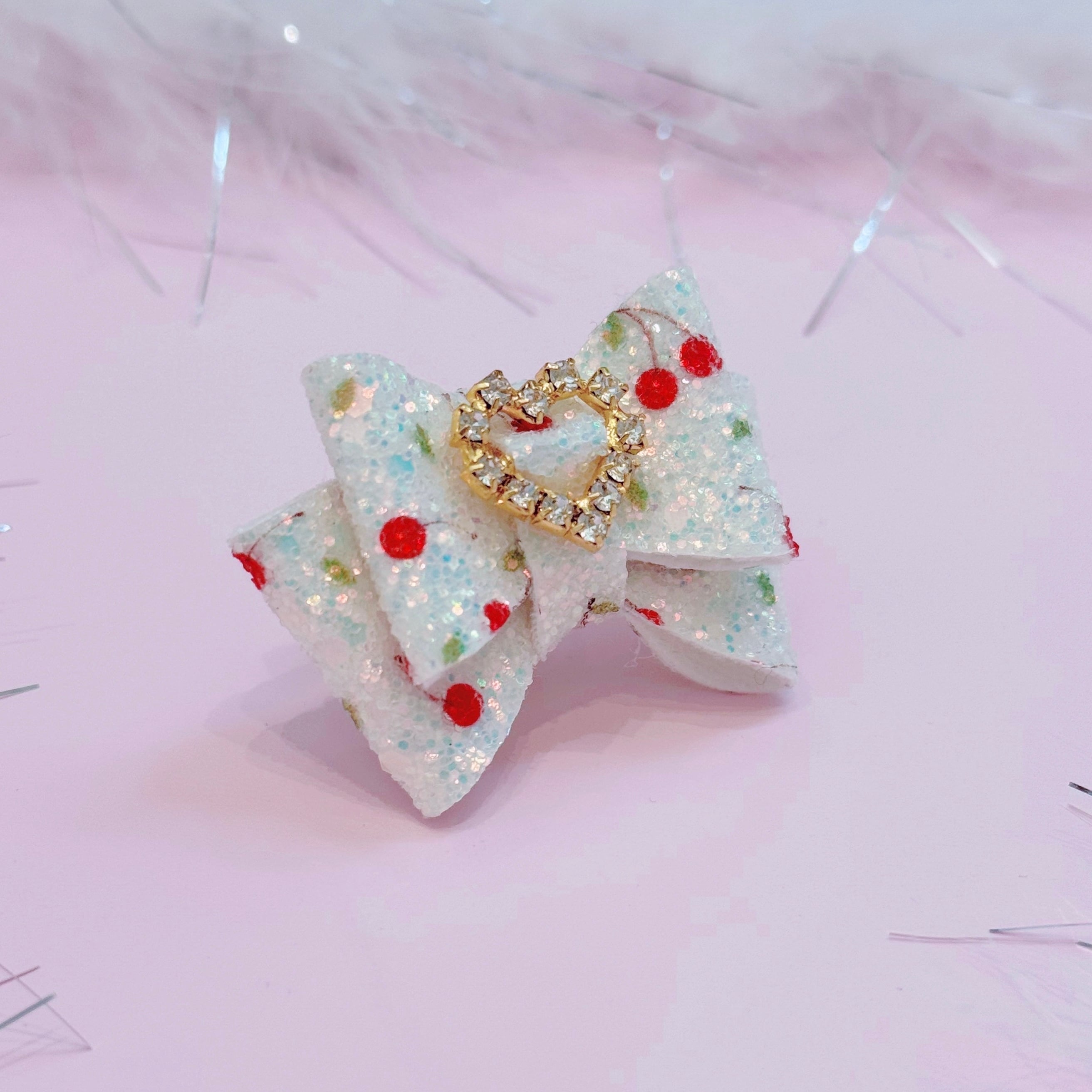 合皮のリボンにビジューのハート型のベルトバックルを真ん中に使用しております。