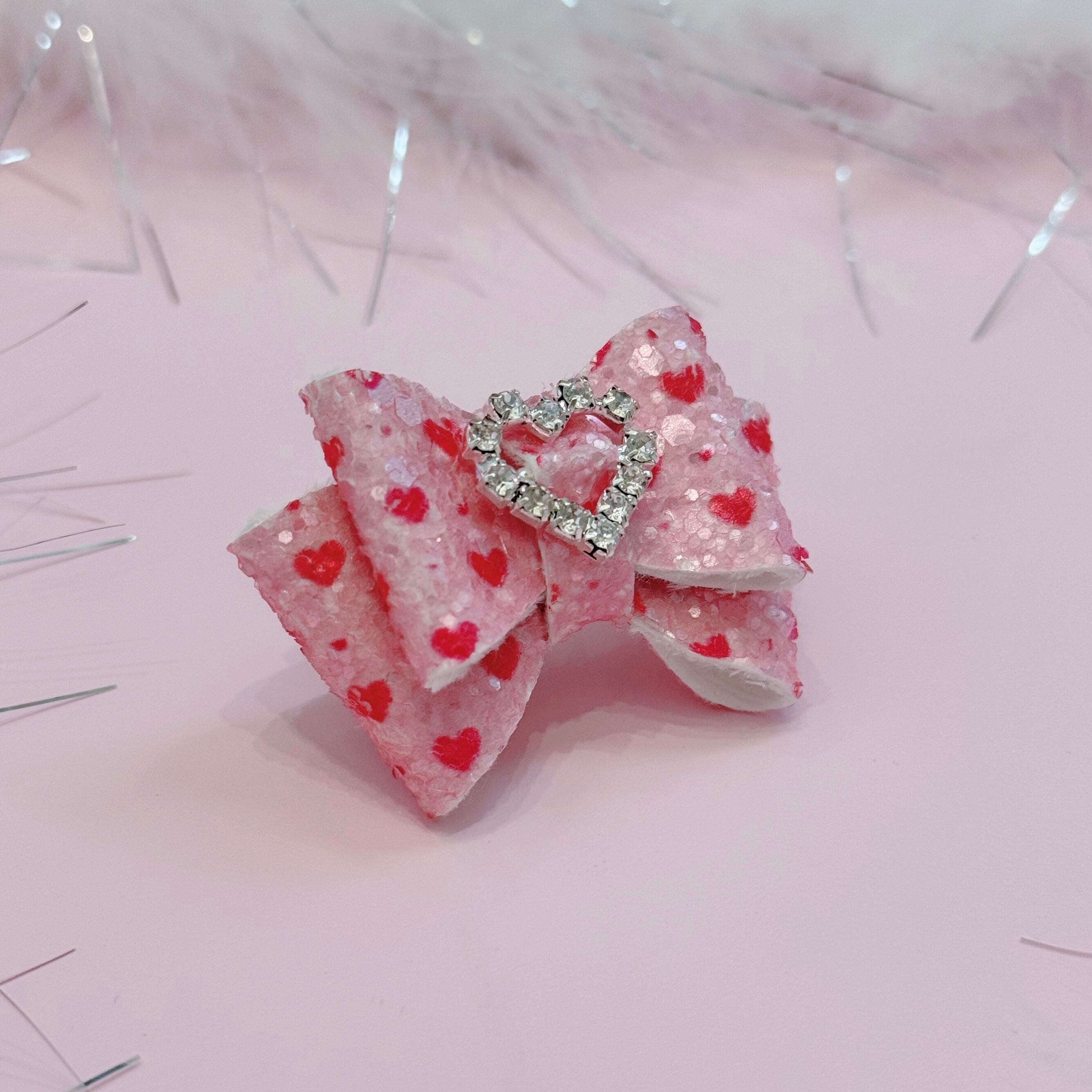 合皮のリボンにビジューのハート型のベルトバックルを真ん中に使用しております。