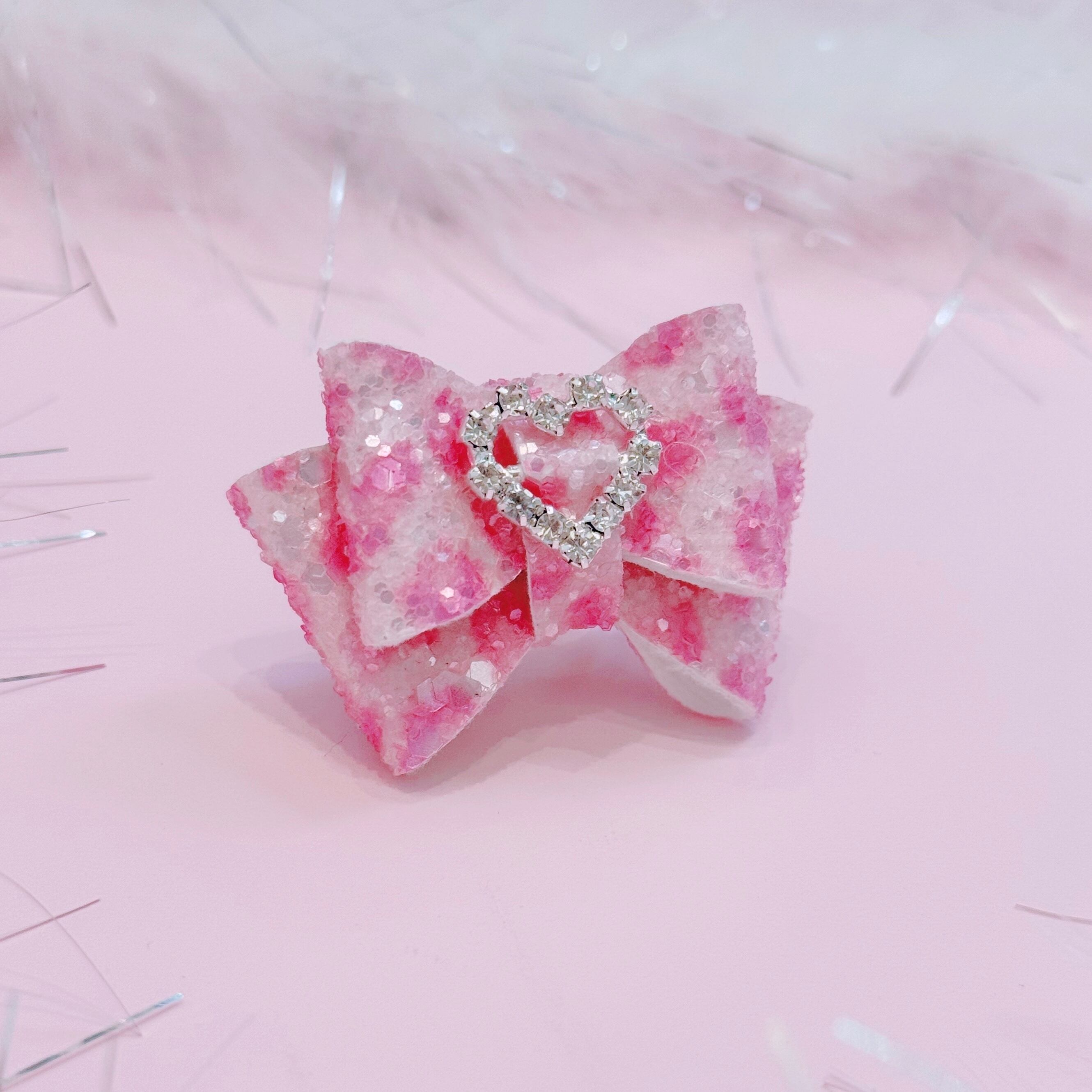 合皮のリボンにビジューのハート型のベルトバックルを真ん中に使用しております。
