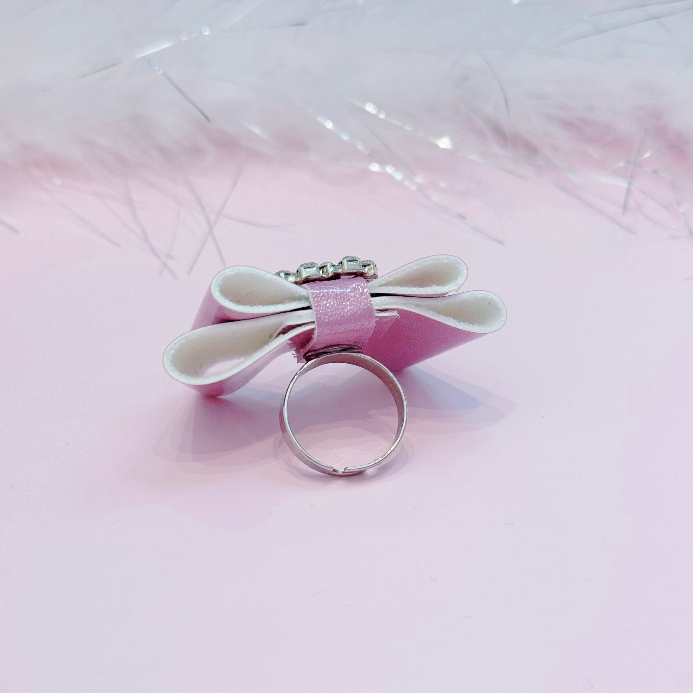 太陽光に浴びると、キラキラ輝くリボンリングで、ジェルネイルをしている手と合わせるとさらに可愛さが増すデザインにしました⟡.·