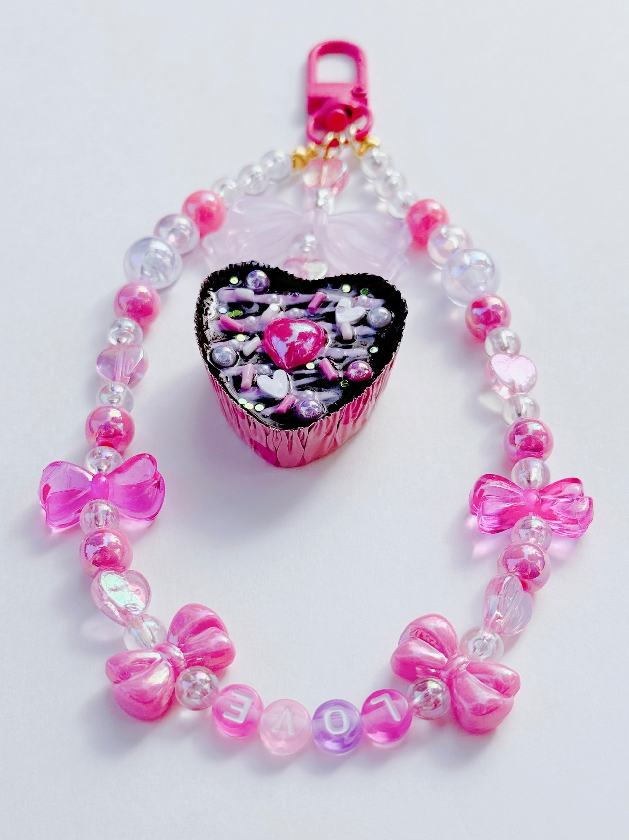 大きめのリボンビーズがポイントで、バッグチャーム•スマホストラップにも使えます!