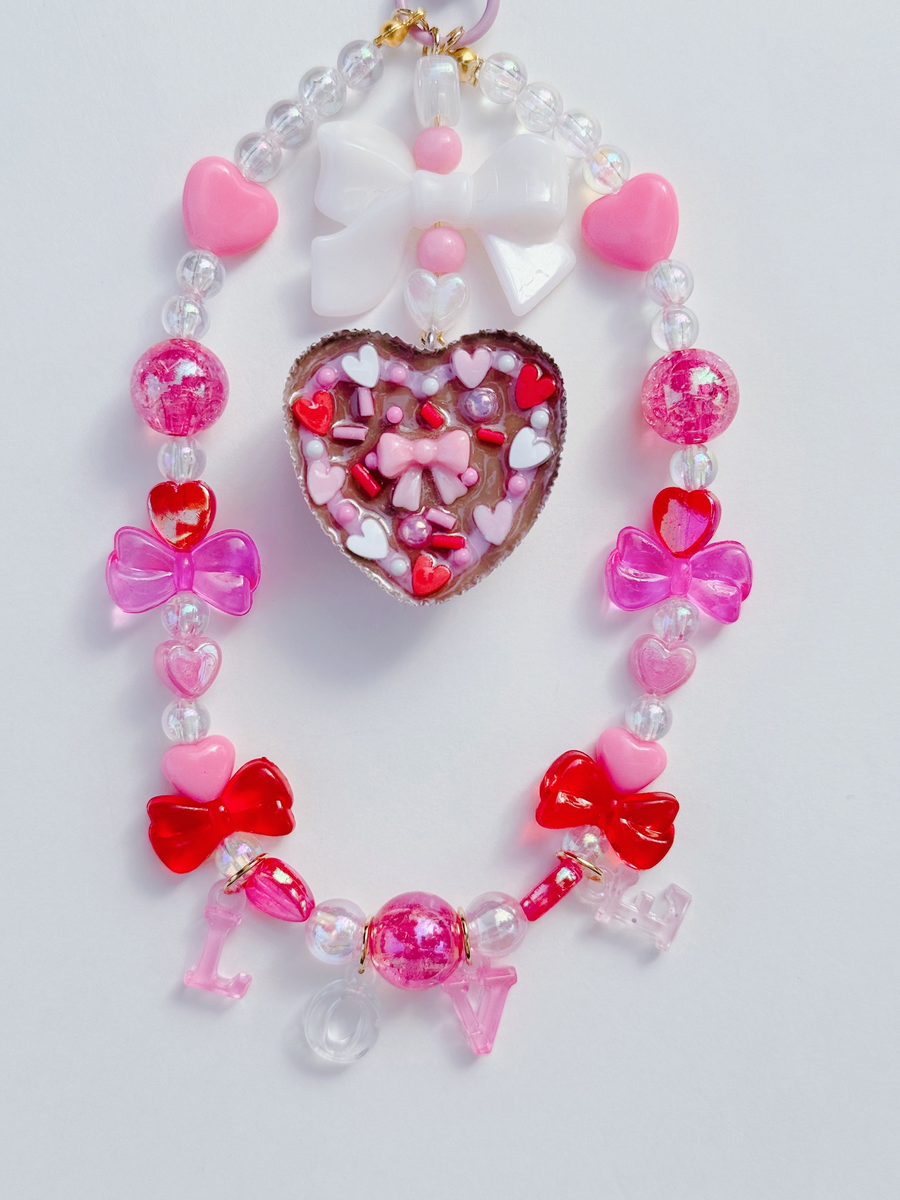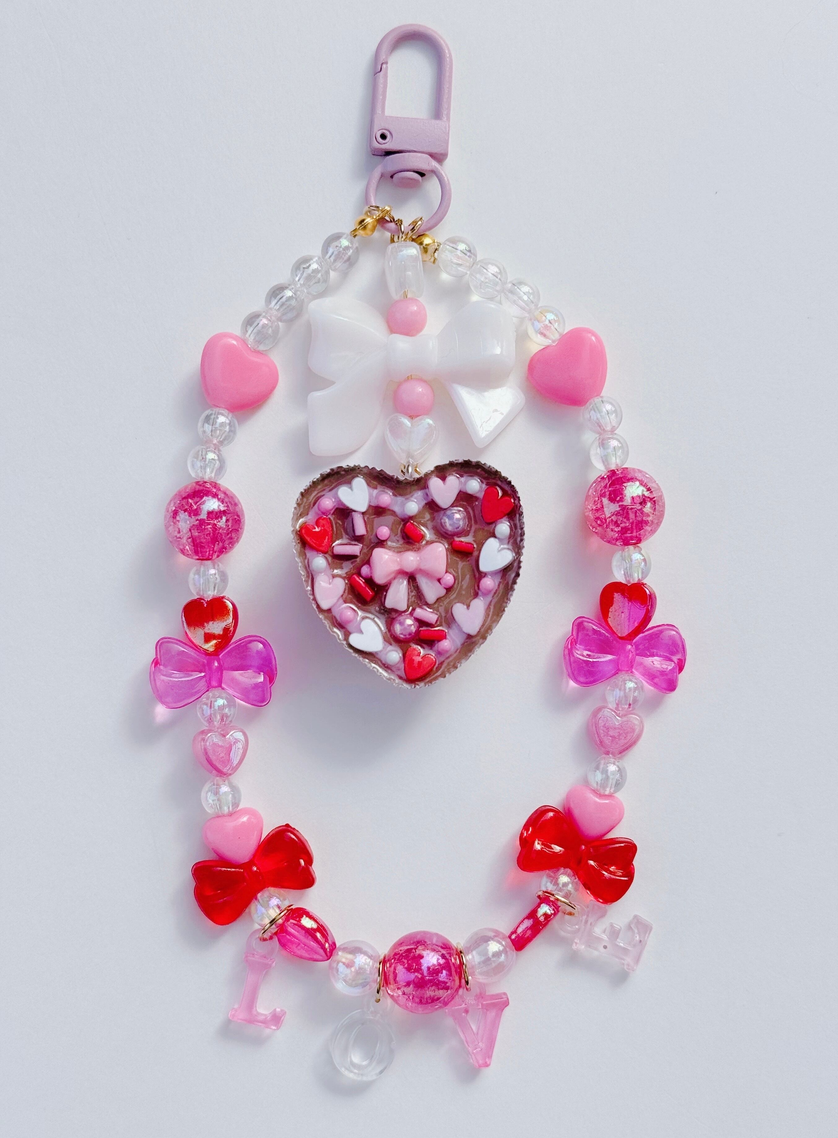 大きめのリボンビーズがポイントで、バッグチャーム•スマホストラップにも使えます!